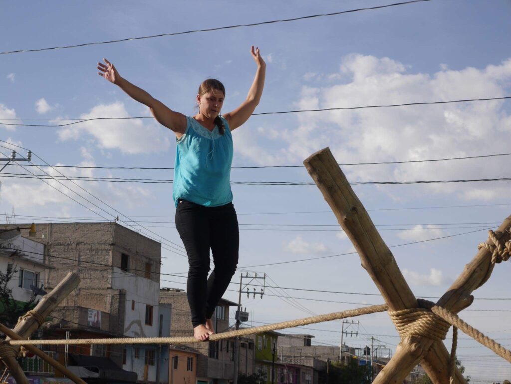 La propuesta del presente proyecto es una danza en cuerda al femenino, inspirándose de personajes tanto europeos como mexicanos. El esfuerzo de entender otras maneras de danzar, otras maneras de pensar el equilibrio en cuerda o cable fue largo y me permitió ser aceptada como mujer en un contexto exclusivamente de varones. Para la creación de la pieza estoy basándome en imágenes y movimientos antiguos. Un personaje que admiro mucho es Madame Saqui (1786- 1866) quien bailó en la cuerda hasta sus casi ochenta años. Figura emblemática de la maroma en femenino, conquistó públicos en Paris y en otras partes del mundo. Después de haber probado su destreza dicen que ya no hubo fiesta sin su participación. Es famosa por haber cruzado el Rio Sena con dos banderas como balancín. Después se presentó en teatros parisinos. Fue tan reconocida que tuvo su propio teatro. La pieza escénica refleja sobretodo la última etapa de vida artística de Madame Saqui, expresando la vejez. La pieza tiene un toque cómico e integra al público en el universo del personaje.